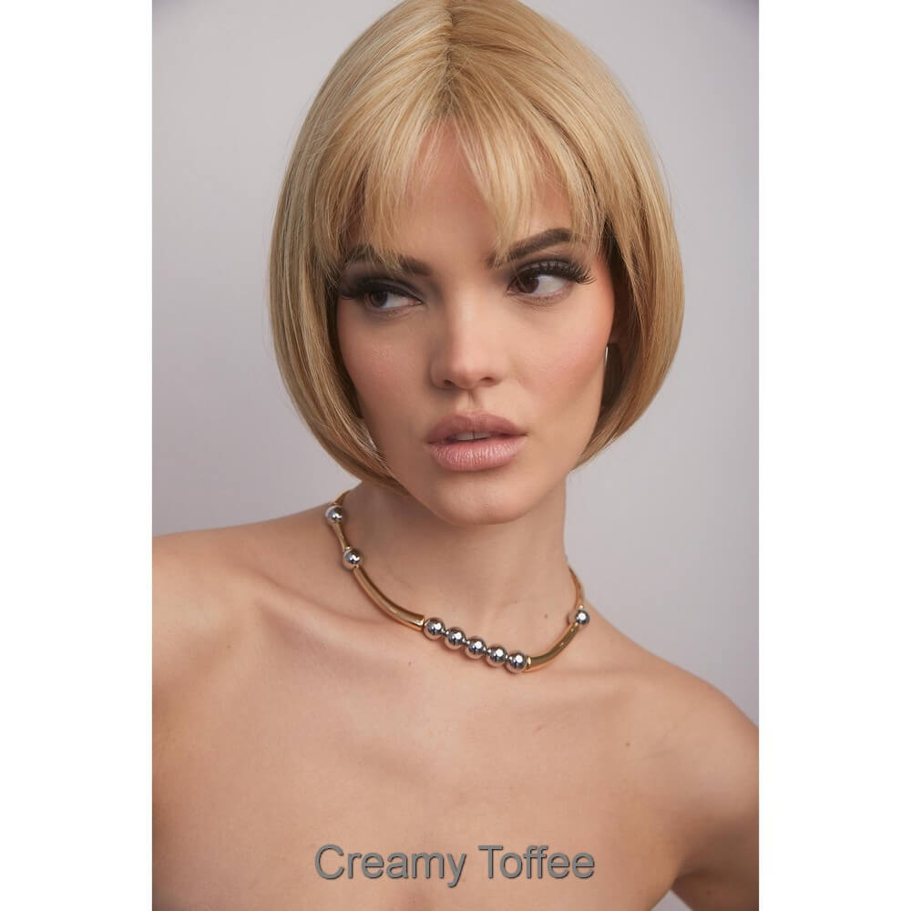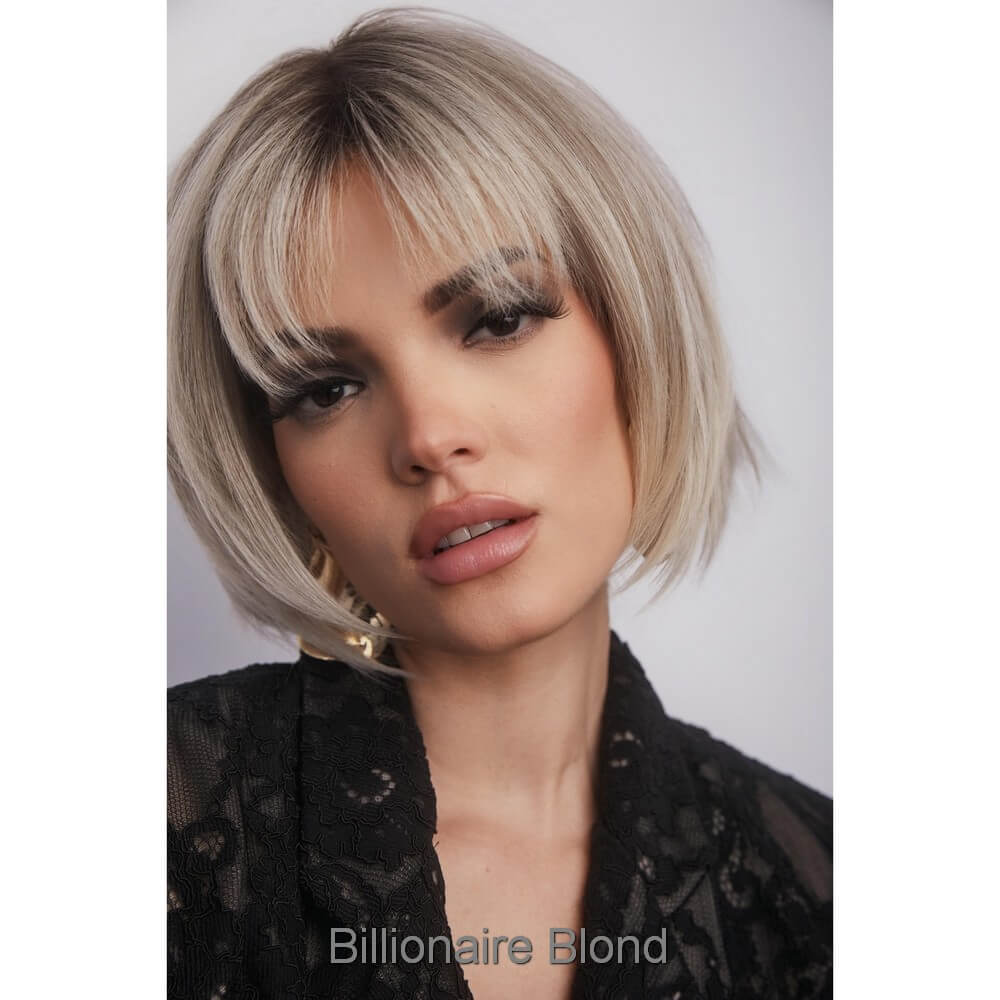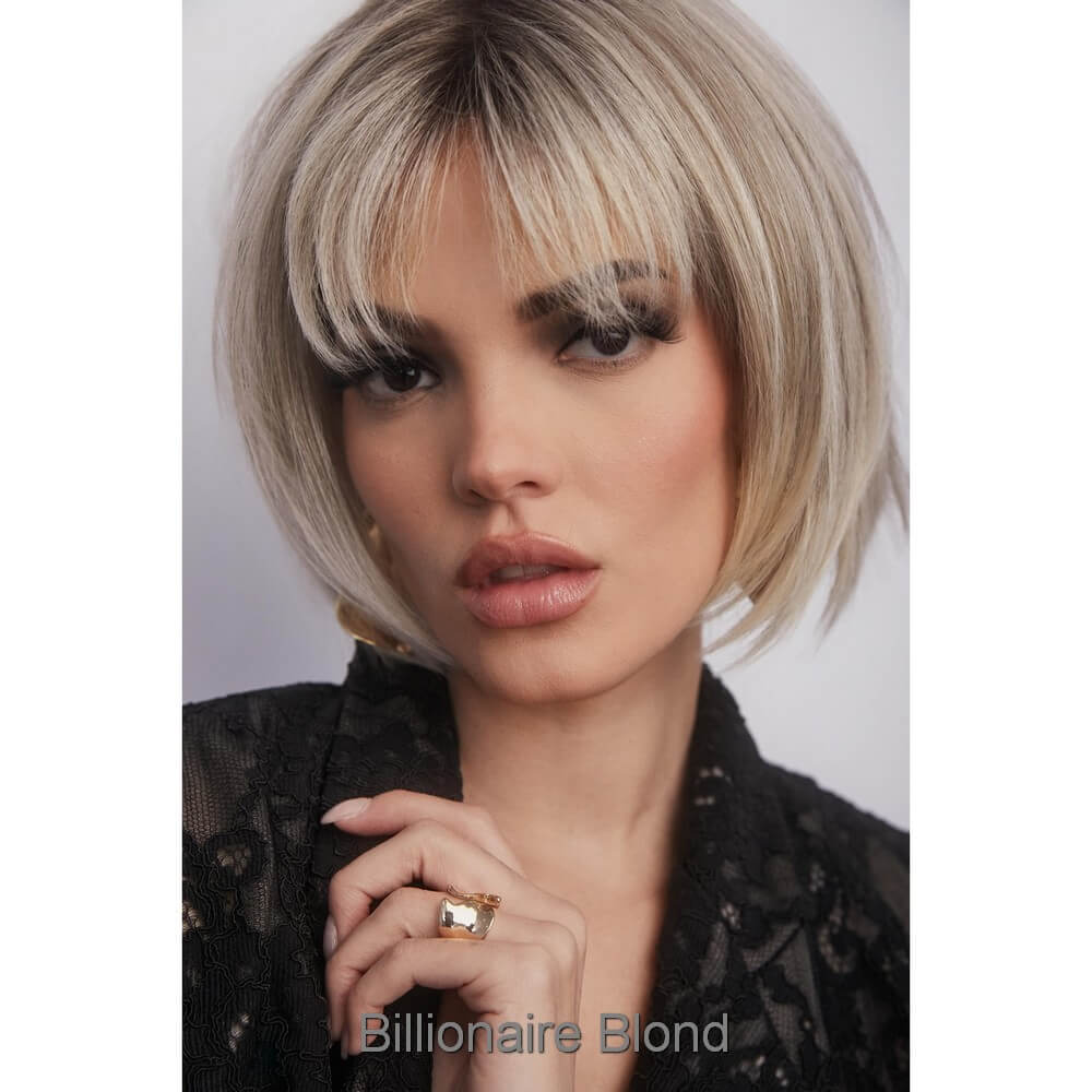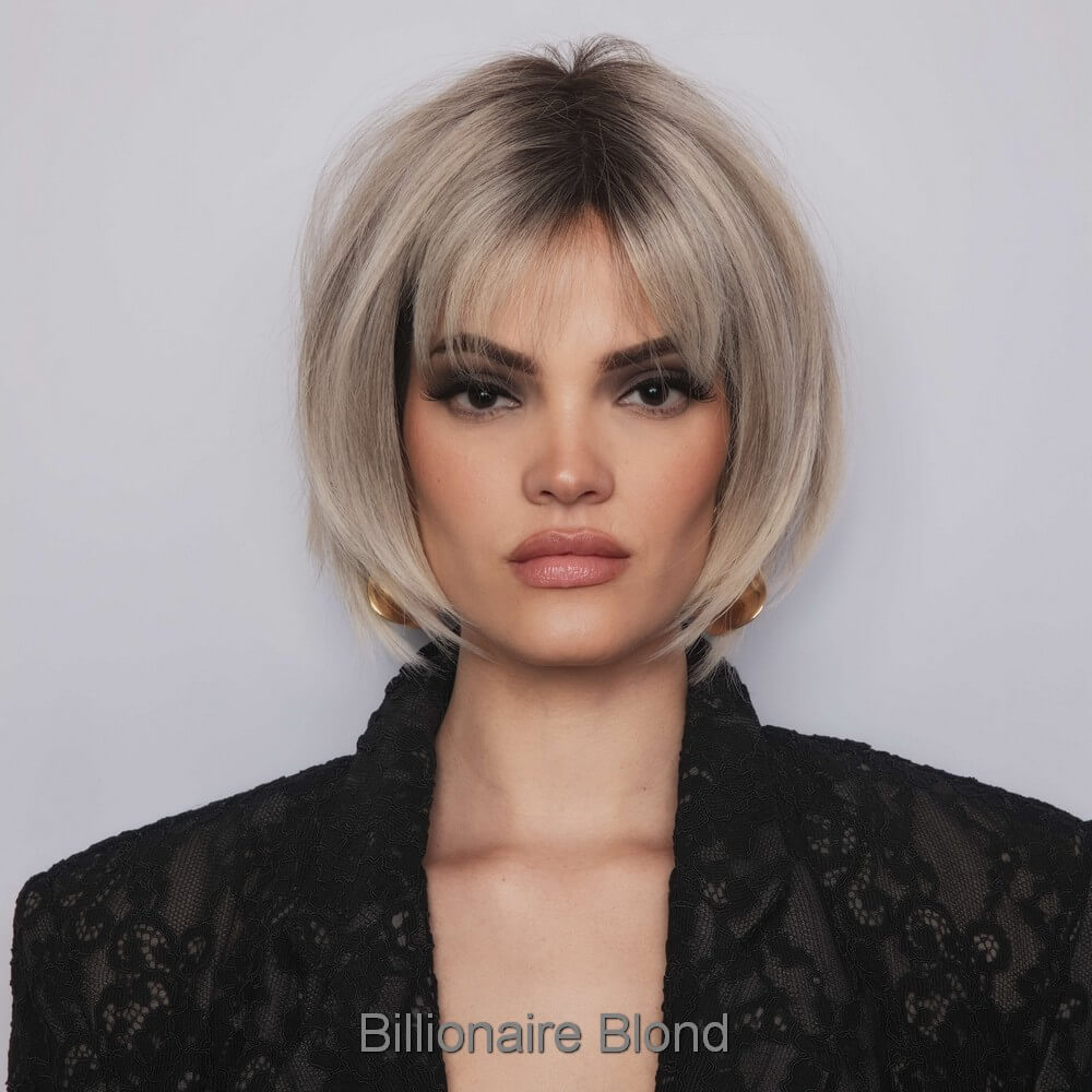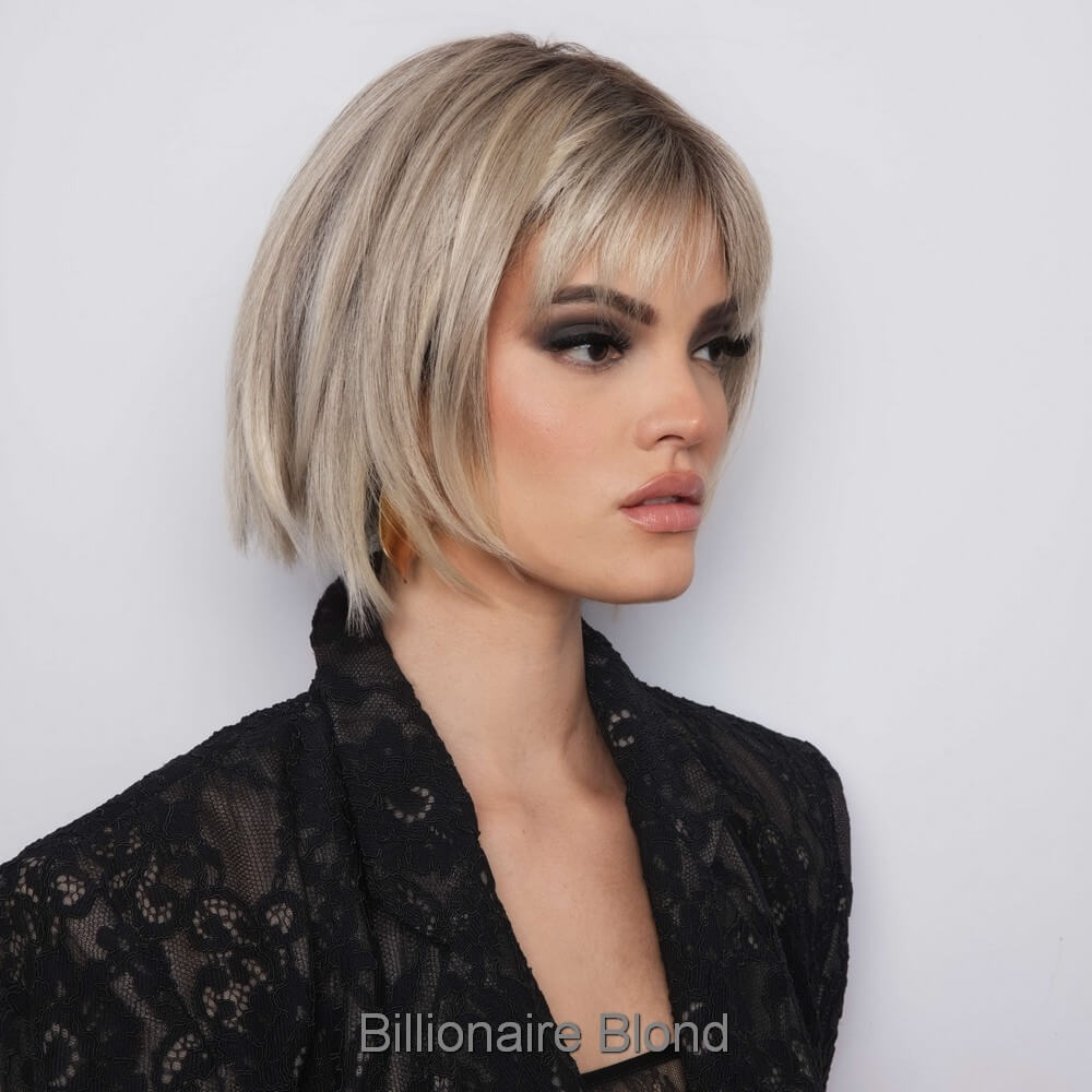 Aria from the Alexander Couture Collection is a short length heat friendly wig. This straight ready-to-wear wig is a versatile short bob with invisible layers that create a stunning silhouette, whether styled sleek or choppy. It's soft cut bangs add a touch of elegance, making this look effortlessly chic. Aria is an extended lace front, lace part. Its lace front will give you a natural look with the lace part cap. Aria cap construction has adjustable tabs in the back nape area to allow a more comfortable fit. The result is a comfortable fit with a natural look that is both fashionable and easy to wear. Extended Lace Front + Lace Part Heat Friendly Straight