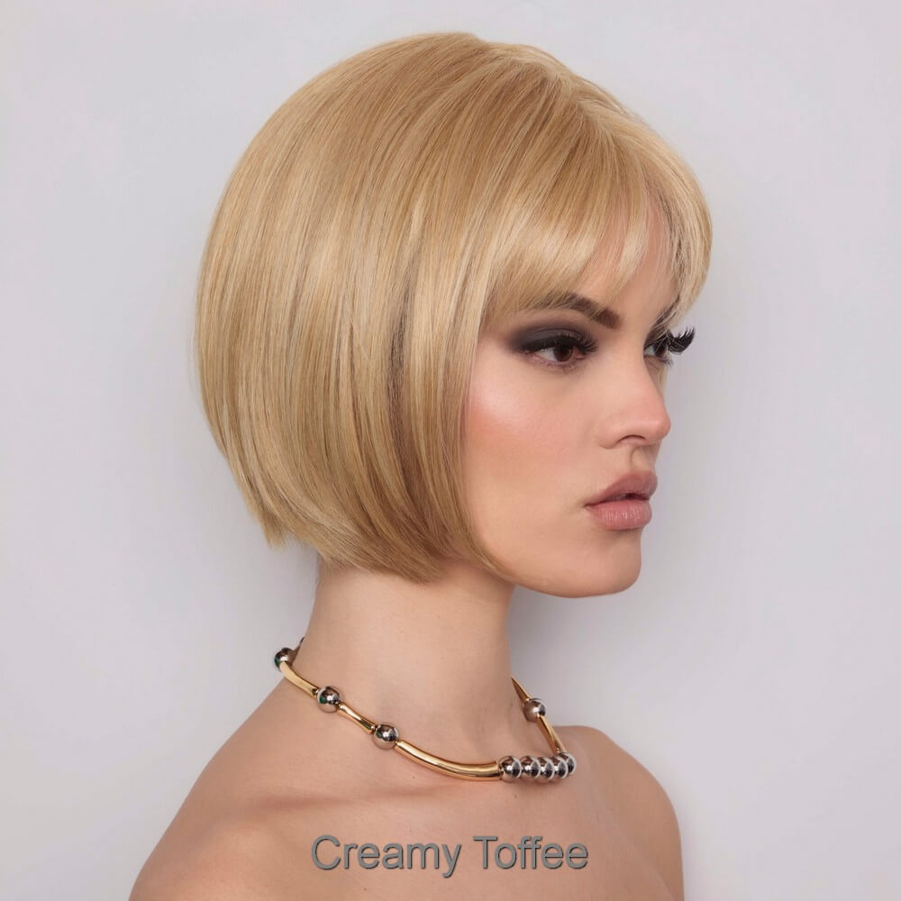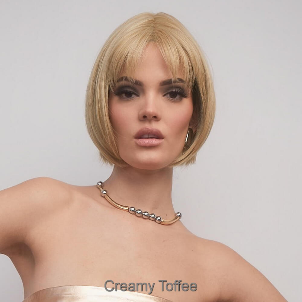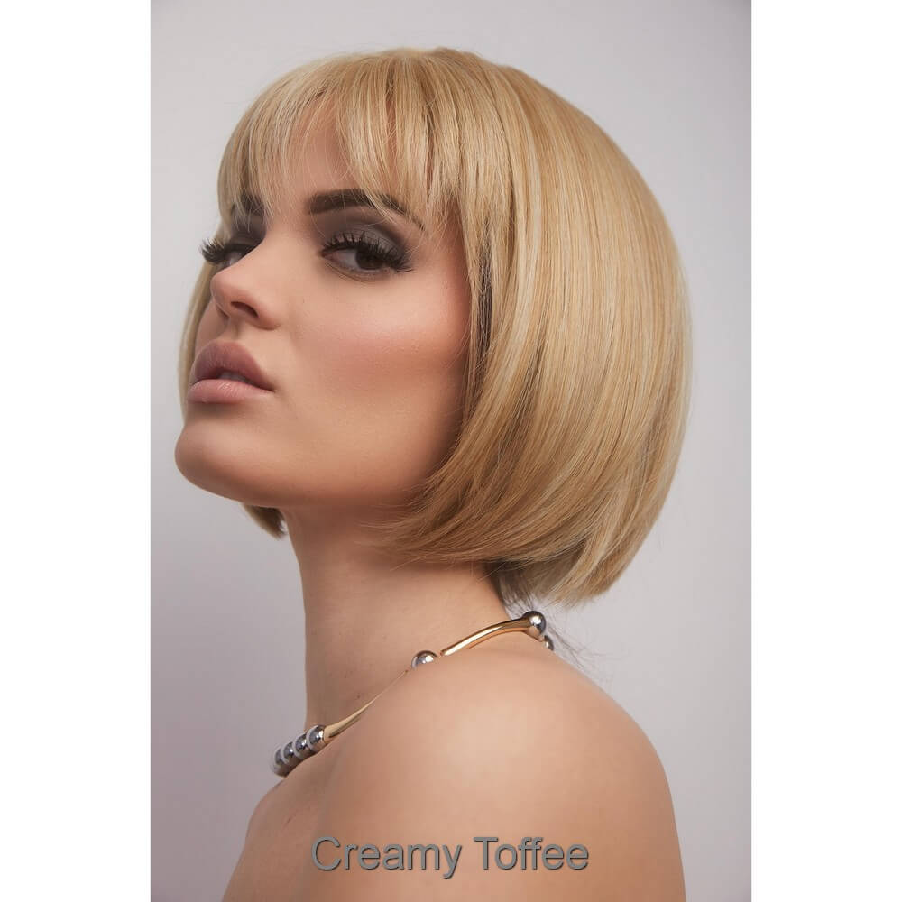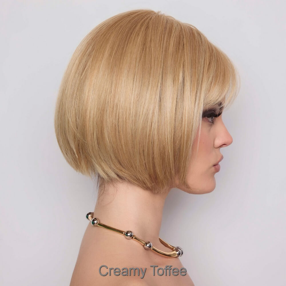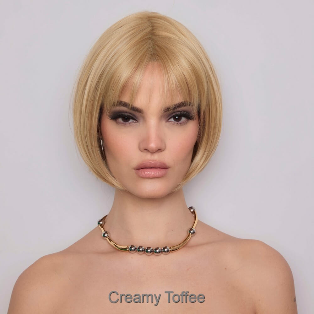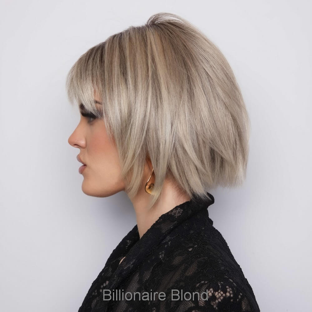 Aria from the Alexander Couture Collection is a short length heat friendly wig. This straight ready-to-wear wig is a versatile short bob with invisible layers that create a stunning silhouette, whether styled sleek or choppy. It's soft cut bangs add a touch of elegance, making this look effortlessly chic. Aria is an extended lace front, lace part. Its lace front will give you a natural look with the lace part cap. Aria cap construction has adjustable tabs in the back nape area to allow a more comfortable fit. The result is a comfortable fit with a natural look that is both fashionable and easy to wear. Extended Lace Front + Lace Part Heat Friendly Straight