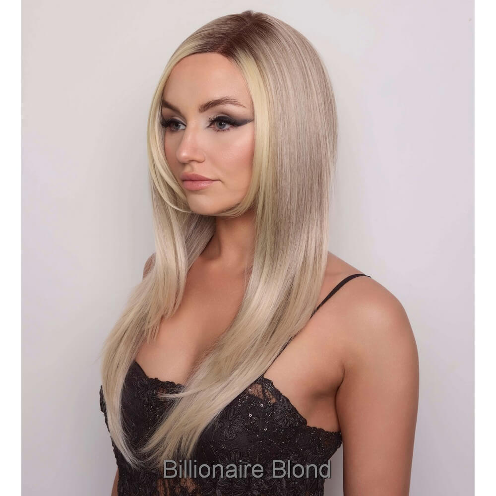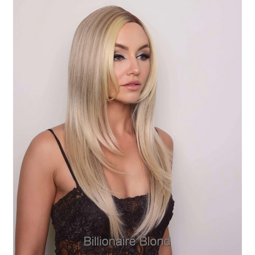 Bryony from the Alexander Couture Collection is a long length heat friendly wig. This stunning straight ready-to-wear has face-framing layers that beautifully will enhance your features. The sleek straight style offers gorgeous movement, adding elegance and sophistication to any look. Bryony is an extended lace front, lace partial monofilament with a soft lace. Its lace front will give you a natural look. Bryony's cap construction has adjustable tabs in the back nape area to allow a more comfortable fit. The result is a comfortable fit with a natural look that is both fashionable and easy to wear. Extended Lace Front + Lace Partial Monofilament + Soft Lace Heat Friendly Straight