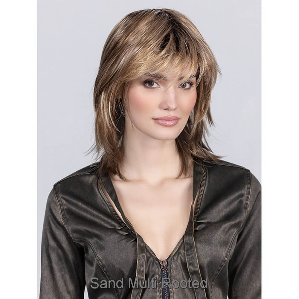 Perucci Collection | The Rainbow Wig from the Ellen Wille Perucci Collection is a vibrant, shoulder-length style with soft, layered movement and a feathered fringe for playful sophistication. Made with high-quality synthetic fibers, this low-maintenance wig features a monofilament crown for natural parting and a wefted cap for comfortable, breathable wear. Perfect for adding effortless style and color to your look. Synthetic, Straight, Medium, Shag