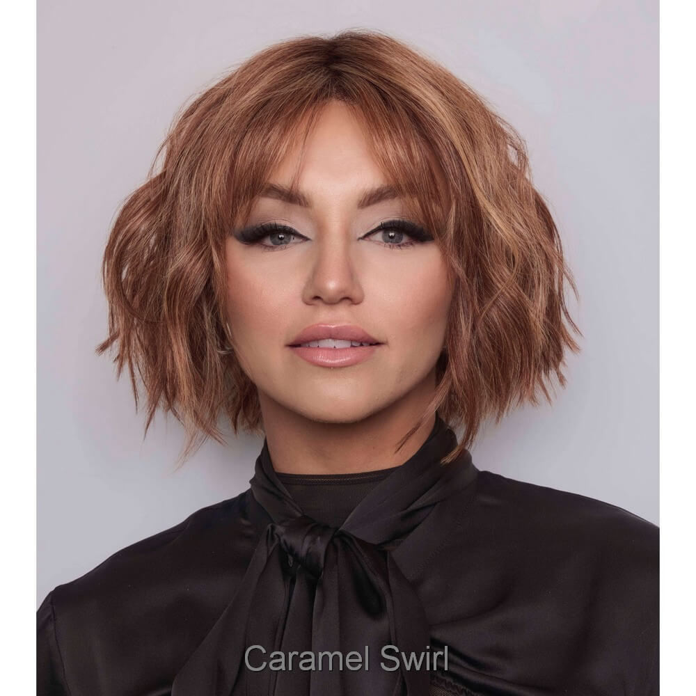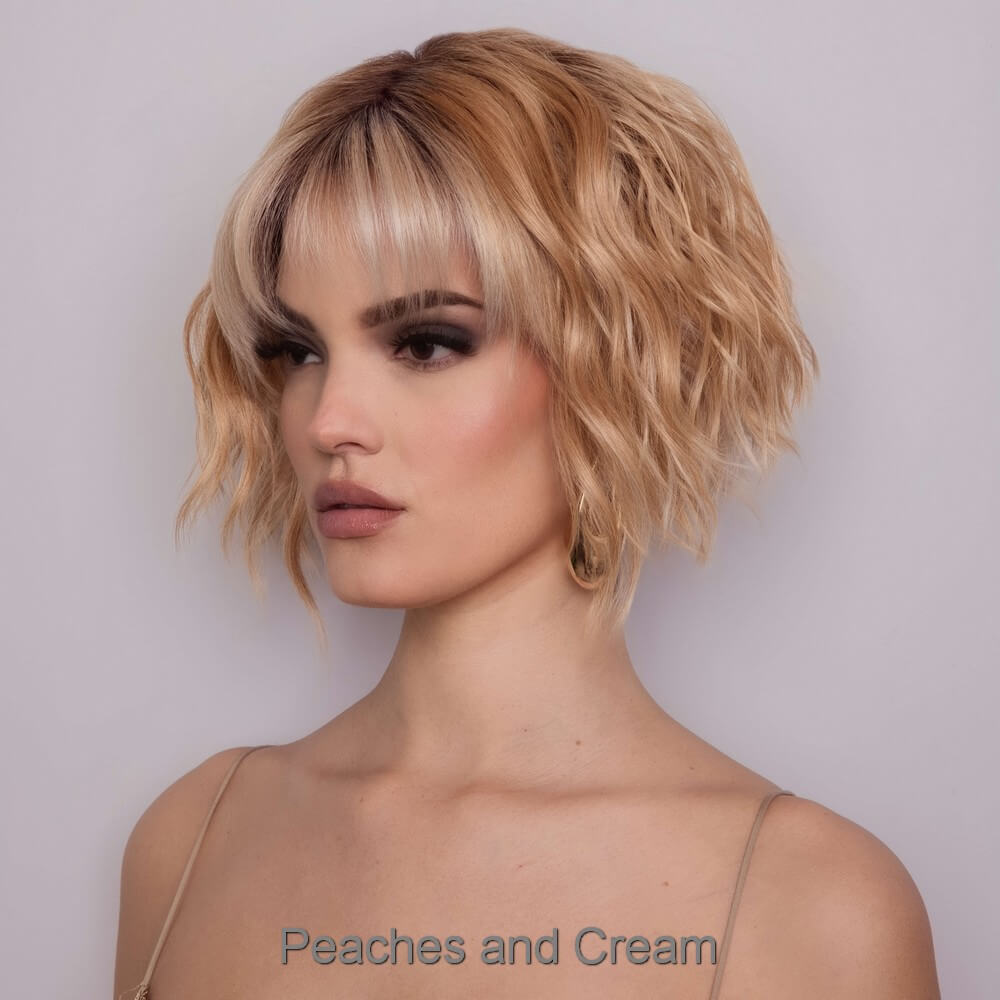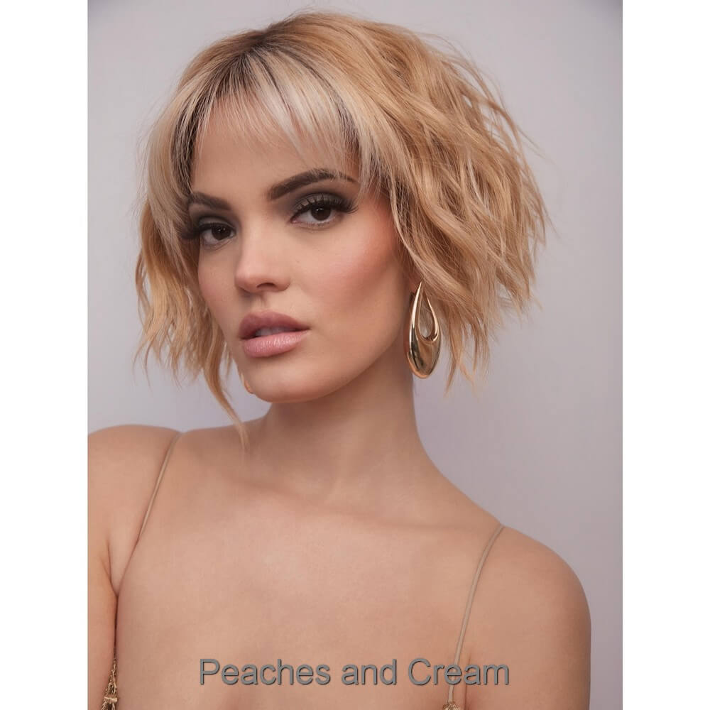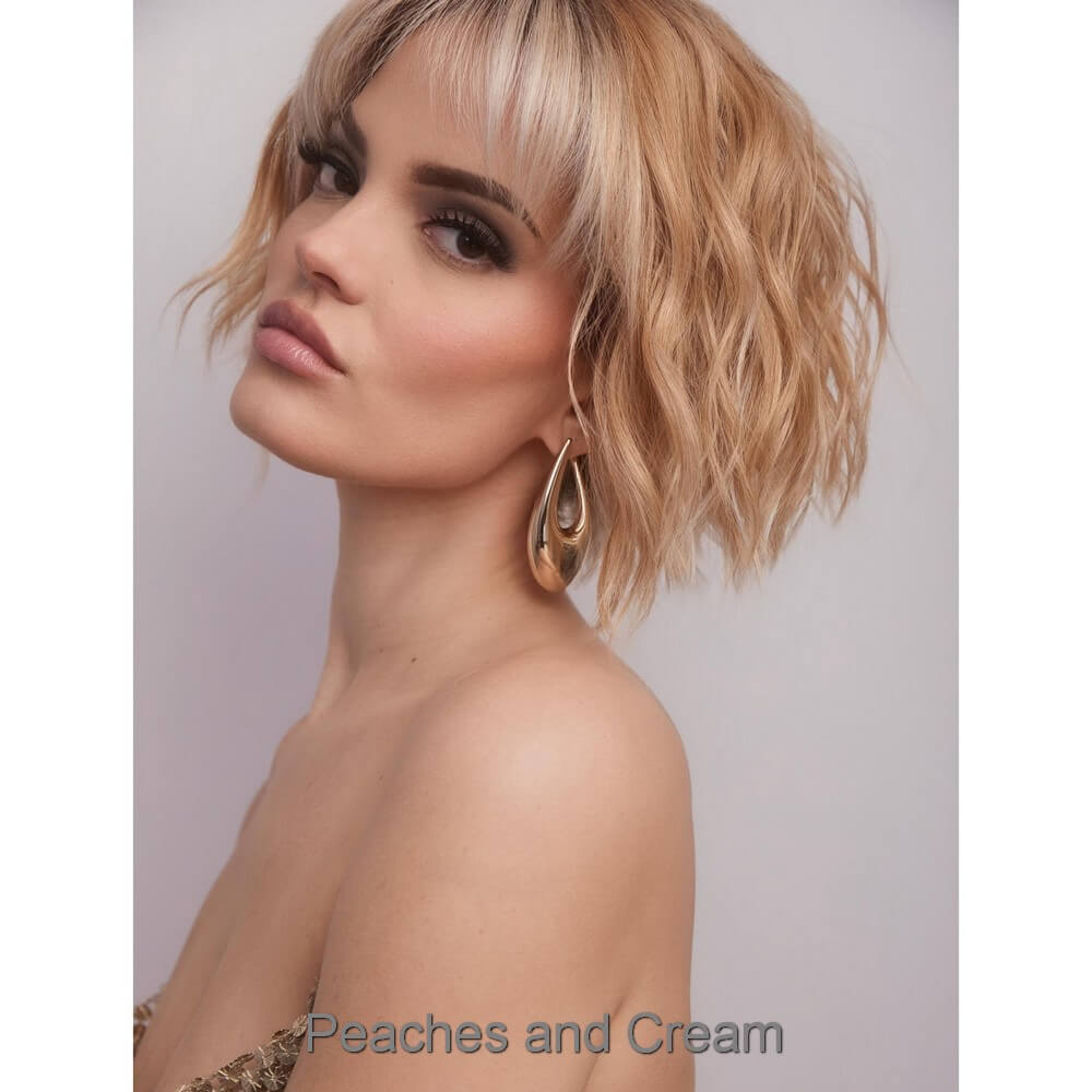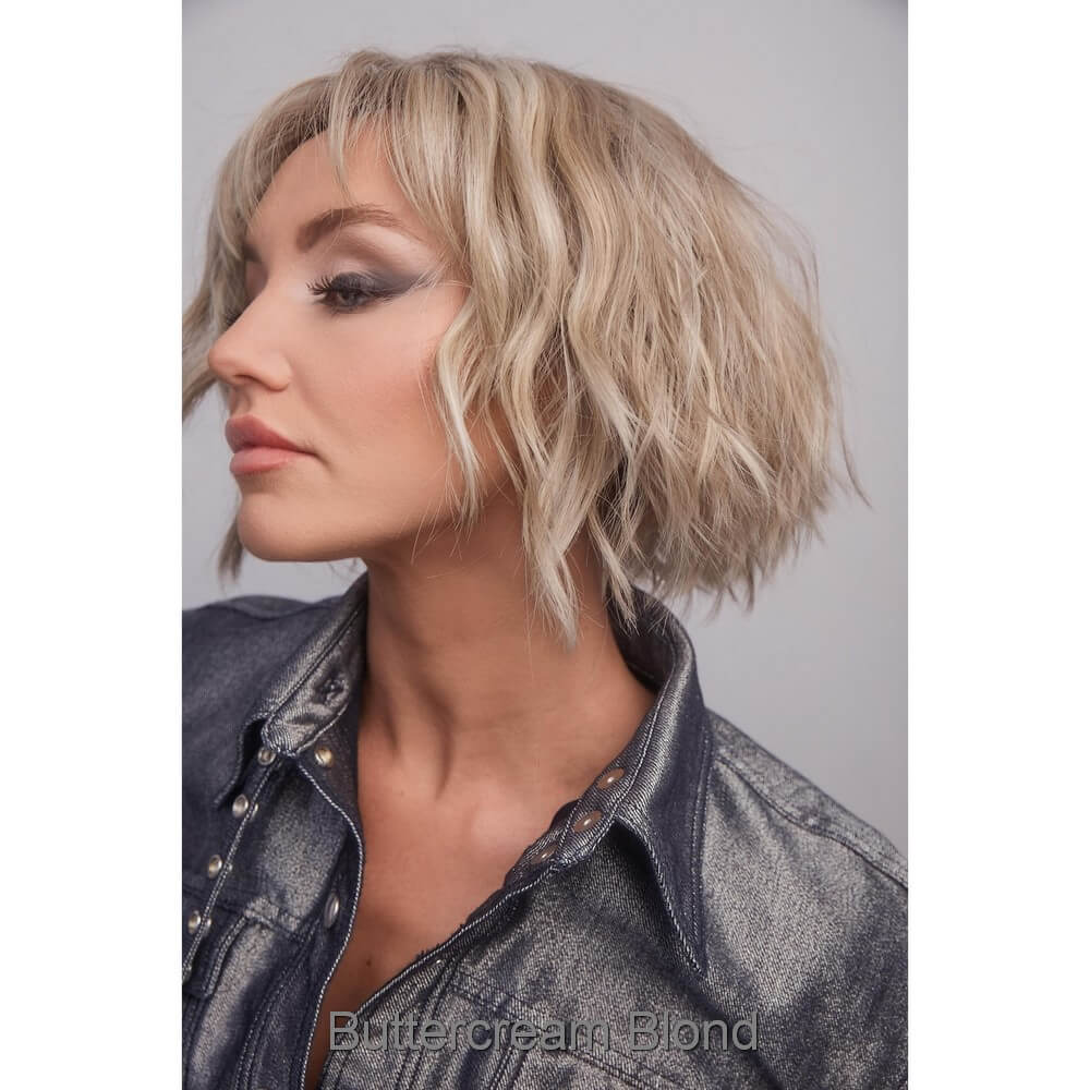 Rosanna from the Alexander Couture Collection is a short length heat friendly wig. This wavy ready-to-wear wig is a bob that features soft bangs that blend a super cool vibe with feminine charm. Effortlessly trendy, this style is perfect for anyone seeking a chic and stylish update. Designed with an extended lace front and lace part made of soft lace. Rosanna cap construction has adjustable tabs in the back nape area to allow a more comfortable fit. The result is a comfortable fit with a natural look that is both fashionable and easy to wear. Extended Lace Front + Lace Part + Soft Lace Heat Friendly Wavy