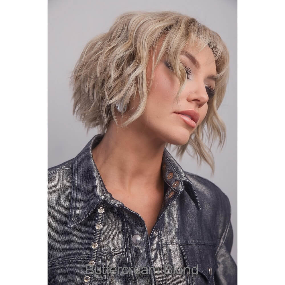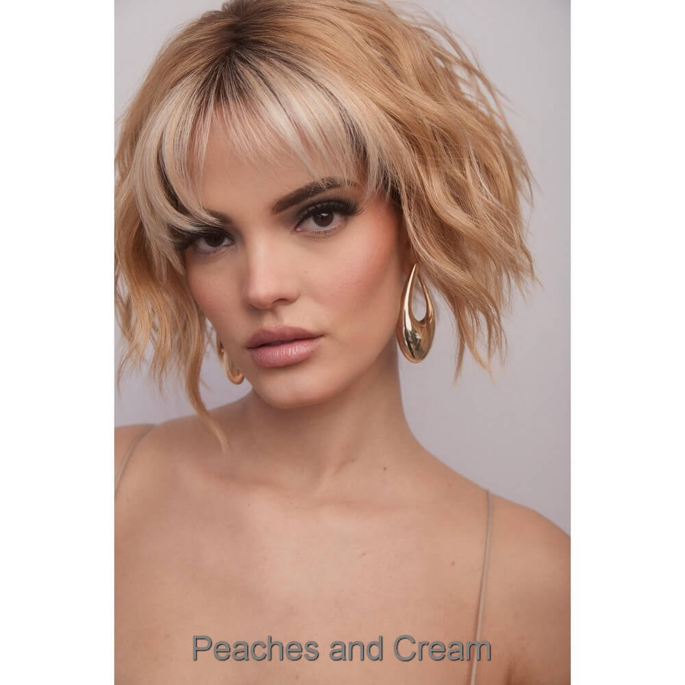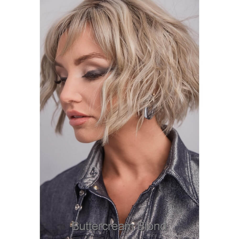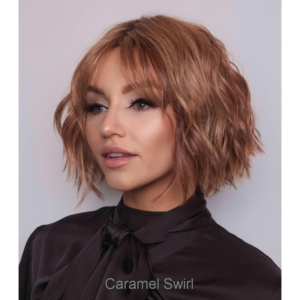 Rosanna from the Alexander Couture Collection is a short length heat friendly wig. This wavy ready-to-wear wig is a bob that features soft bangs that blend a super cool vibe with feminine charm. Effortlessly trendy, this style is perfect for anyone seeking a chic and stylish update. Designed with an extended lace front and lace part made of soft lace. Rosanna cap construction has adjustable tabs in the back nape area to allow a more comfortable fit. The result is a comfortable fit with a natural look that is both fashionable and easy to wear. Extended Lace Front + Lace Part + Soft Lace Heat Friendly Wavy