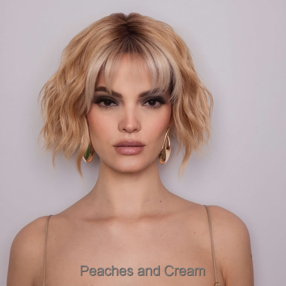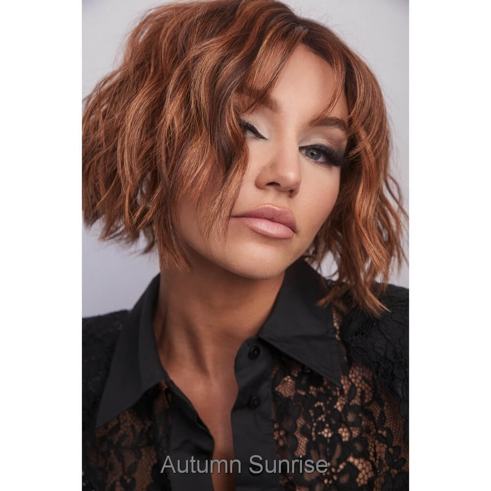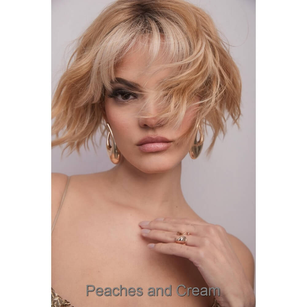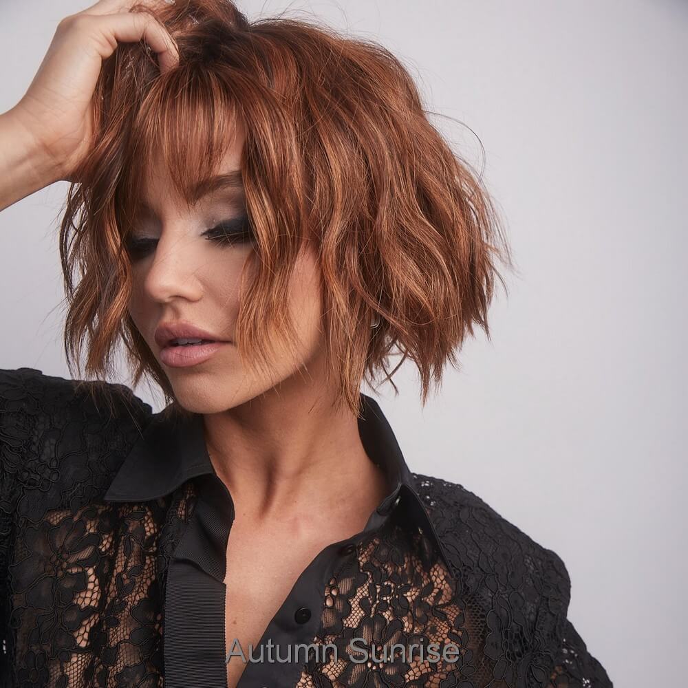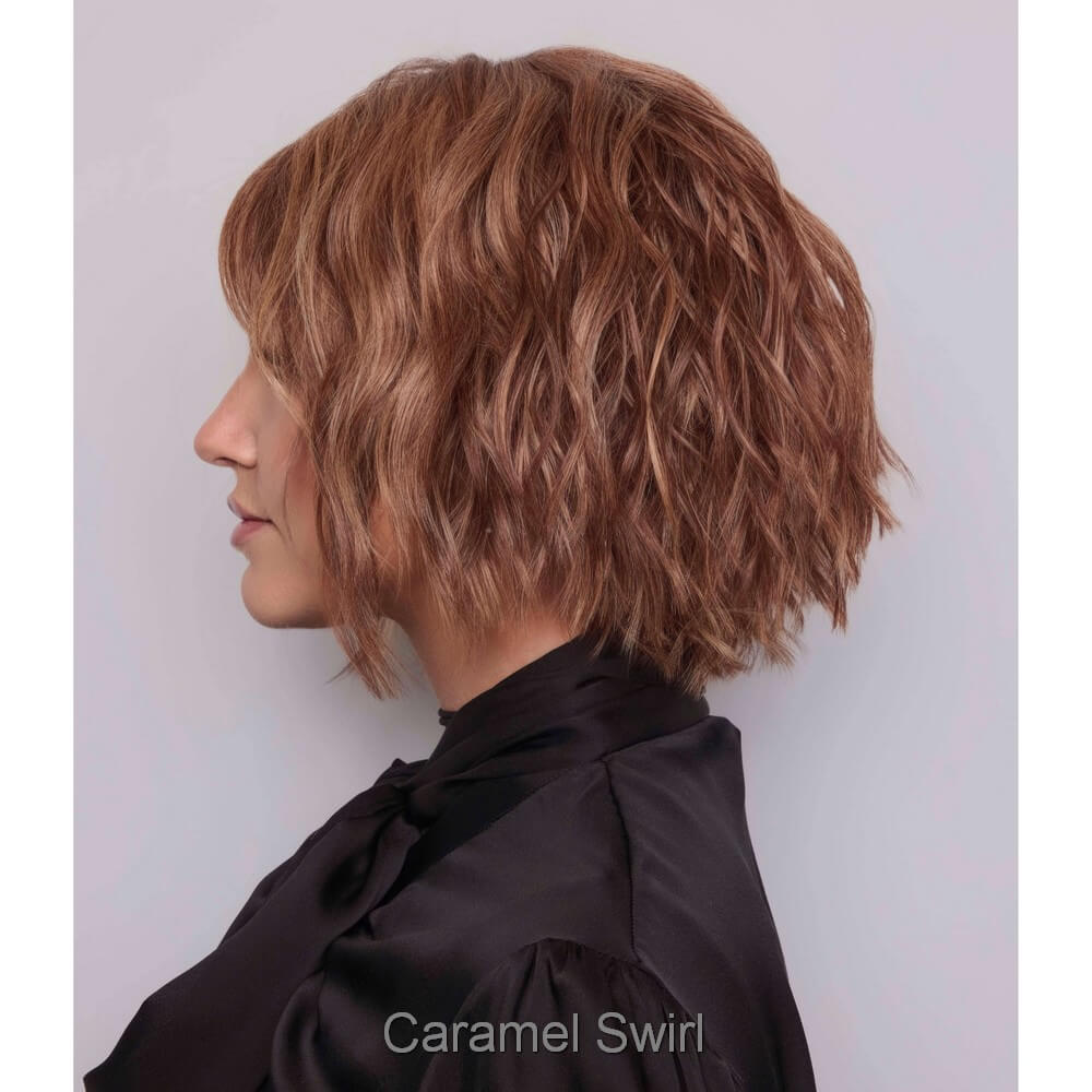 Rosanna from the Alexander Couture Collection is a short length heat friendly wig. This wavy ready-to-wear wig is a bob that features soft bangs that blend a super cool vibe with feminine charm. Effortlessly trendy, this style is perfect for anyone seeking a chic and stylish update. Designed with an extended lace front and lace part made of soft lace. Rosanna cap construction has adjustable tabs in the back nape area to allow a more comfortable fit. The result is a comfortable fit with a natural look that is both fashionable and easy to wear. Extended Lace Front + Lace Part + Soft Lace Heat Friendly Wavy